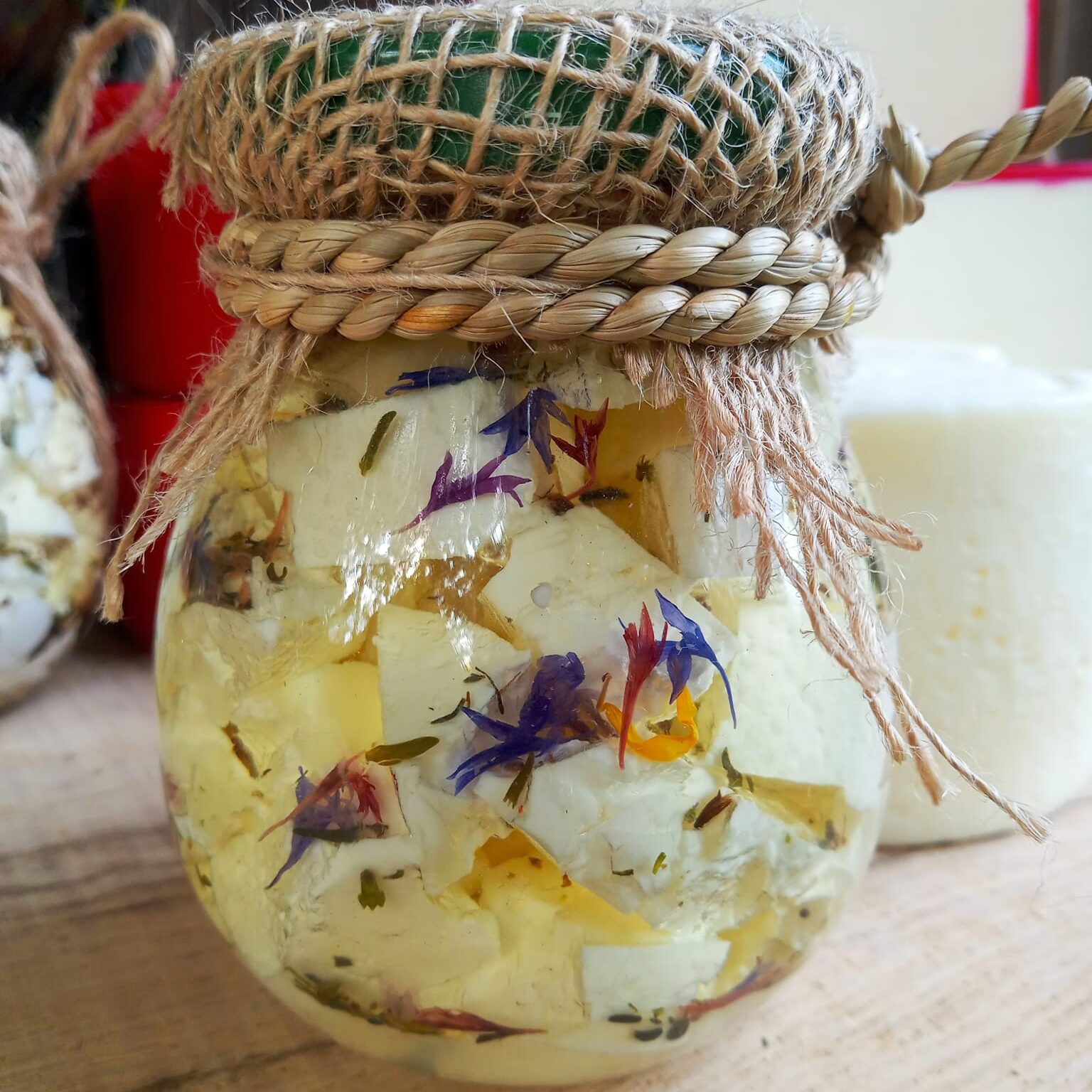 ,,Kosfetta” , ser kozi w typie feta, podpuszczkowy, z pasteryzowanego mleka kóz anglonubijskich, w zalewie- olej rzepakowy, w różnych ziołach, cena słoiczka – 20 zł ( w słoiczku 140 gram czystego sera)