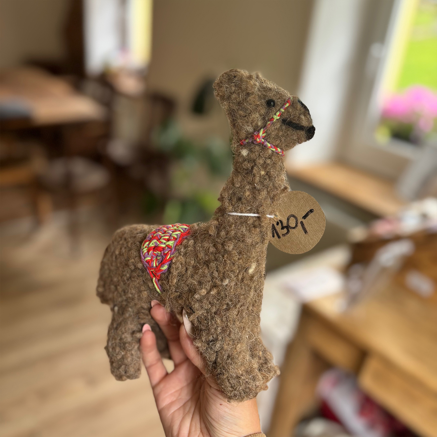 Stworzona z filcowanej wełny alpaki, jest przyjemna w dotyku, lekka, a jednocześnie stabilna. Ma ok. 25 cm wysokości, dzięki czemu przyciąga wzrok i może być nie tylko ozdobą, ale też ukochanym „przyjacielem” do przytulania – zarówno dla dzieci, jak i dorosłych.