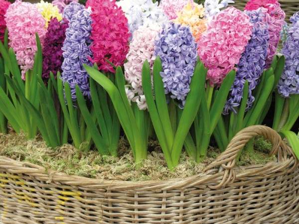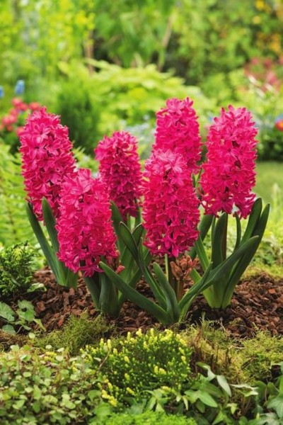 Hiacynt Czerwony – wysokość od 25 do 30 cm. Stanowisko słoneczne. Sadzenie wrzesień-październik, kwitnie kwiecień-maj. Głębokość sadzenia przyjmuje trzykrotną wielkość cebul. Kwiat idealny na rabaty, ale również do kompozycji w pojemnikach, a pędzone cebule (przyspieszające kwitnienie) często wykorzystywane są do ozdoby świątecznego stołu na Boże Narodzenie. Bardzo intensywnie pachnie.