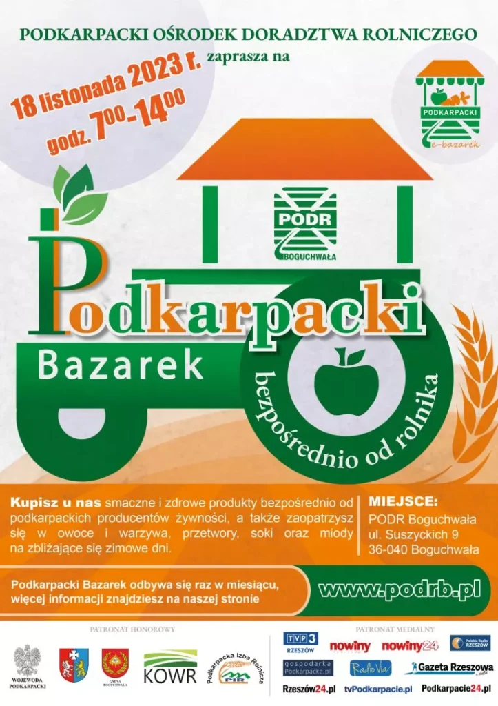 Już 18 listopada Podkarpacki Ośrodek Doradztwa Rolniczego zaprasza smakoszy zdrowej, ekologicznej żywności na kolejną edycję Podkarpackiego Bazarku.